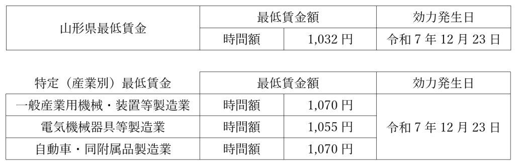 【問い合わせ先】山形労働局労働基準部賃金室(TEL 023-624-8224)または最寄りの労働基準監督署